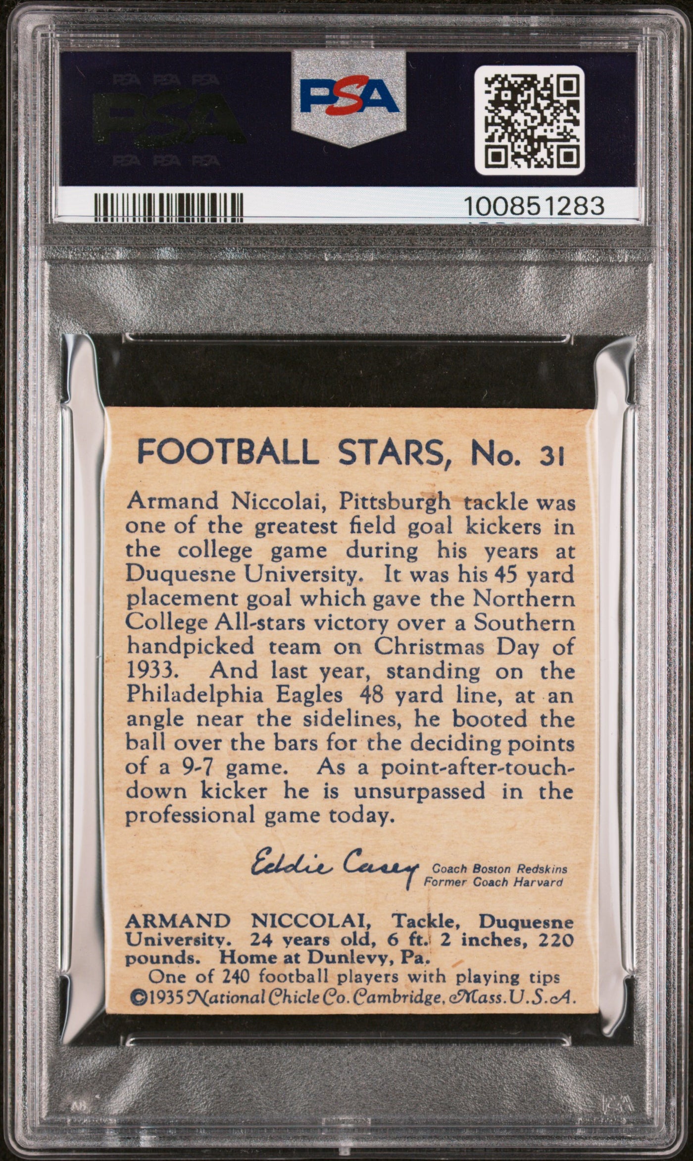 1935 NATIONAL CHICLE NIC NICCOLAI 31 EX RC PSA A FOOTBALL PITTSBURGH PIRATES