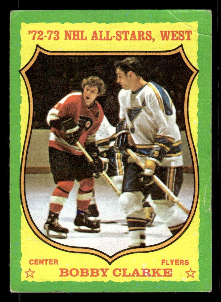 This BOBBY CLARKE, from the 1973 TOPPS set, is in VG condition.