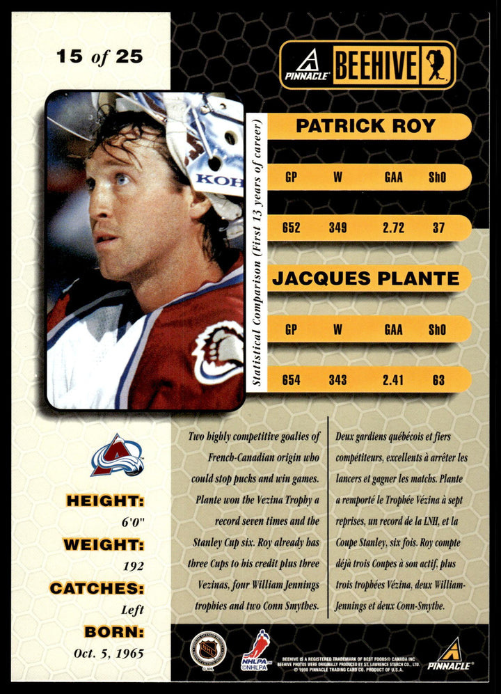 1997 PINNACLE BEEHIVE PATRICK ROY 15 MINT BEEHIVE GOLD TEAM COLORADO AVALANCHE