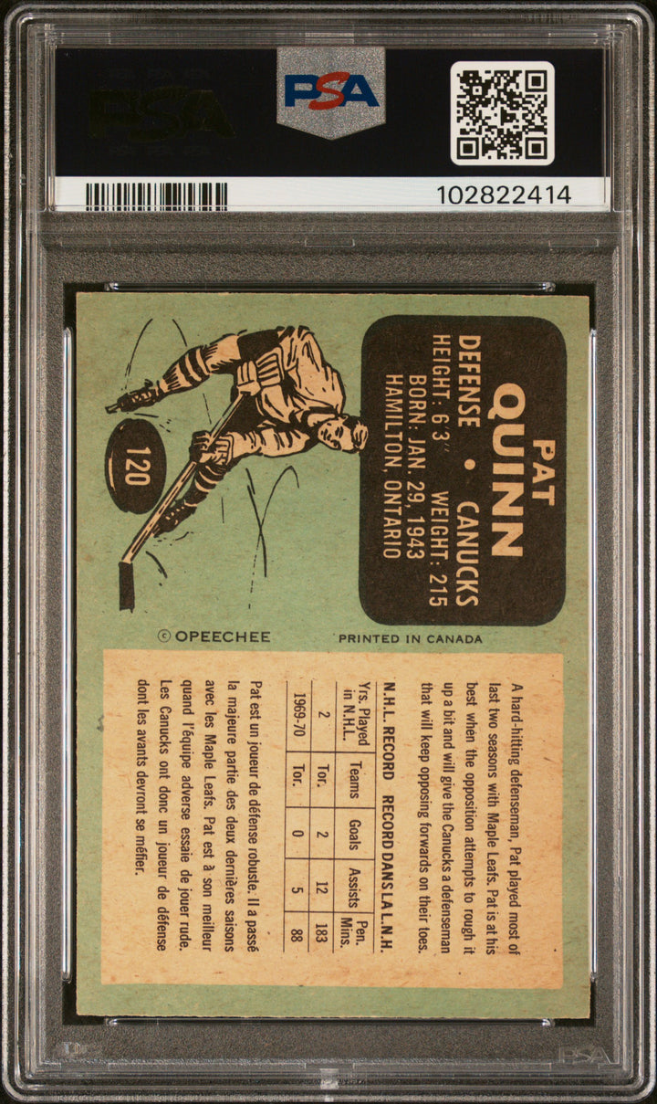 1970 O-PEE-CHEE PAT QUINN 120 PSA 4 VG-EX HOCKEY VANCOUVER CANUCKS