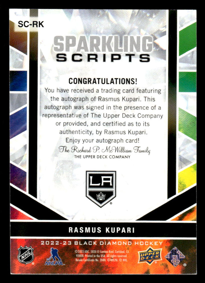 2022 BLACK DIAMOND RASMUS KUPARI SC-RK SPARKLING SCRIPTS AUTOGRAPH KINGS