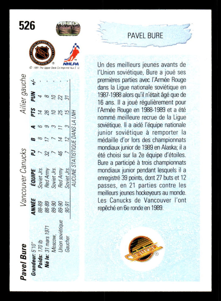 1990 UPPER DECK FRENCH PAVEL BURE 526 MINT RC HOCKEY VANCOUVER CANUCKS