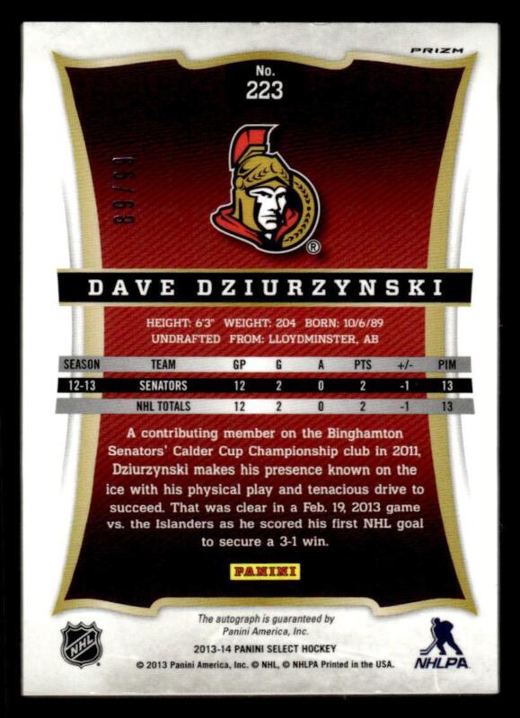 2013 PANINI SELECT DAVE DZIURZYNSKI 223 RC AUTOGRAPH PRIZMS 89/99 SENATORS