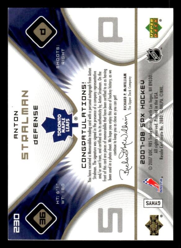 2007 SPX ANTON STRALMAN 230 MINT JERSEY RC AUTOGRAPH 677/999 TORONTO MAPLE LEAFS