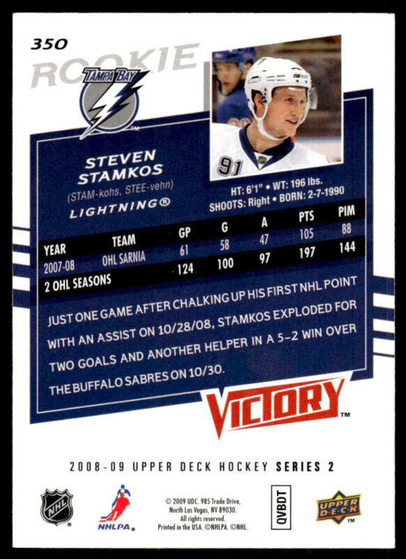 2008 UPPER DECK STEVEN STAMKOS 350 MT VICTORY UPDATE RC TAMPA BAY LIGHTNING
