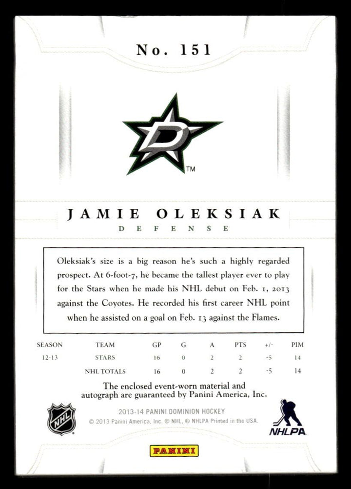 This Jamie Oleksiak, from the 2013 PANINI DOMINION set, is in MINT condition.