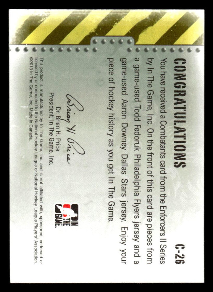 2013 IN THE GAME ENFORCERS TODD FEDORUK C-26 AARON DOWNEY COMBATANTS JERSEY DUAL