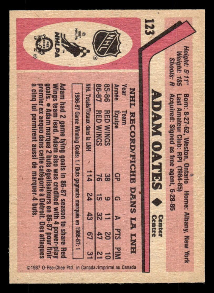 1987 O-PEE-CHEE ADAM OATES 123 NRMT RC HOCKEY DETROIT RED WINGS