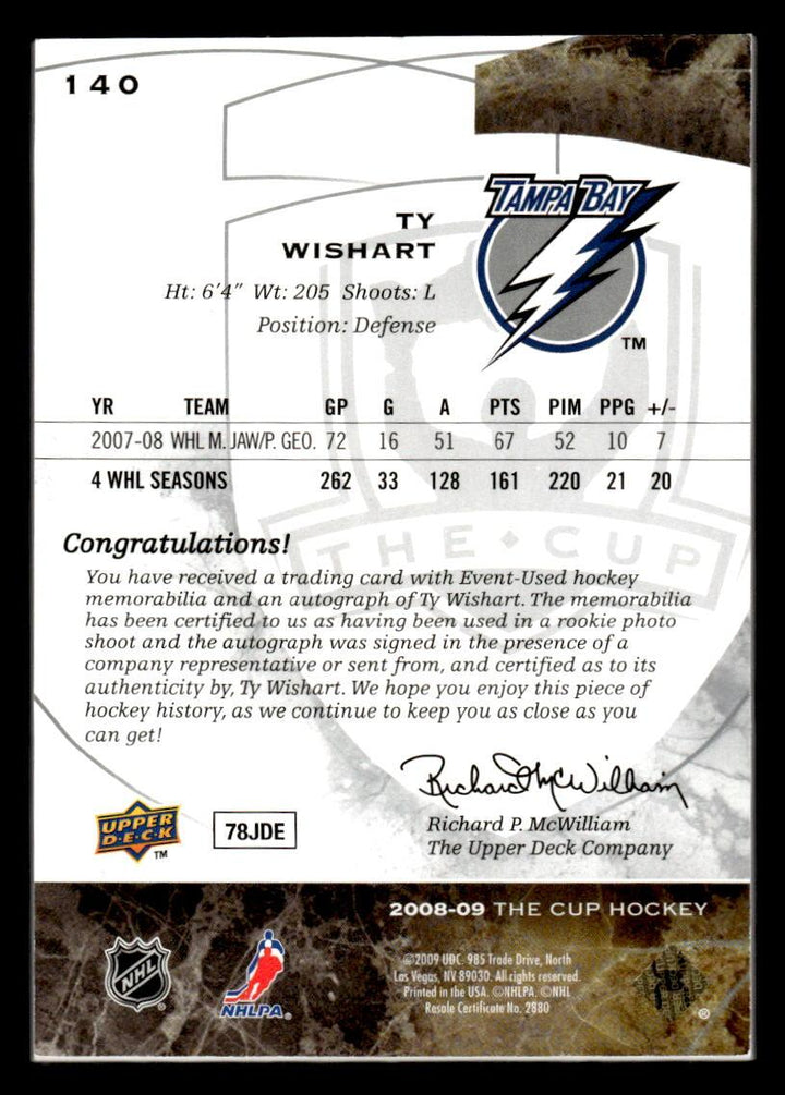 2008 UPPER DECK THE CUP TY WISHART 140 RC PATCH AUTOGRAPH RPA 114/249 LIGHTNING