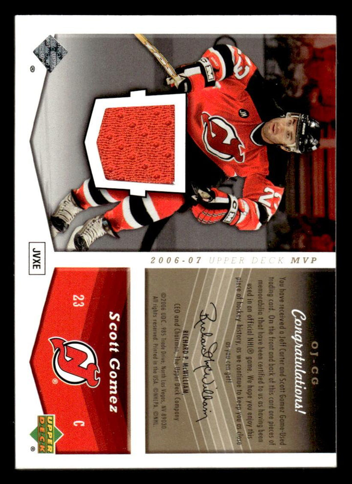 2006 UPPER DECK MVP SCOTT GOMEZ OJ-CG JEFF CARTER ONE ON ONE DUAL RELIC DEVILS