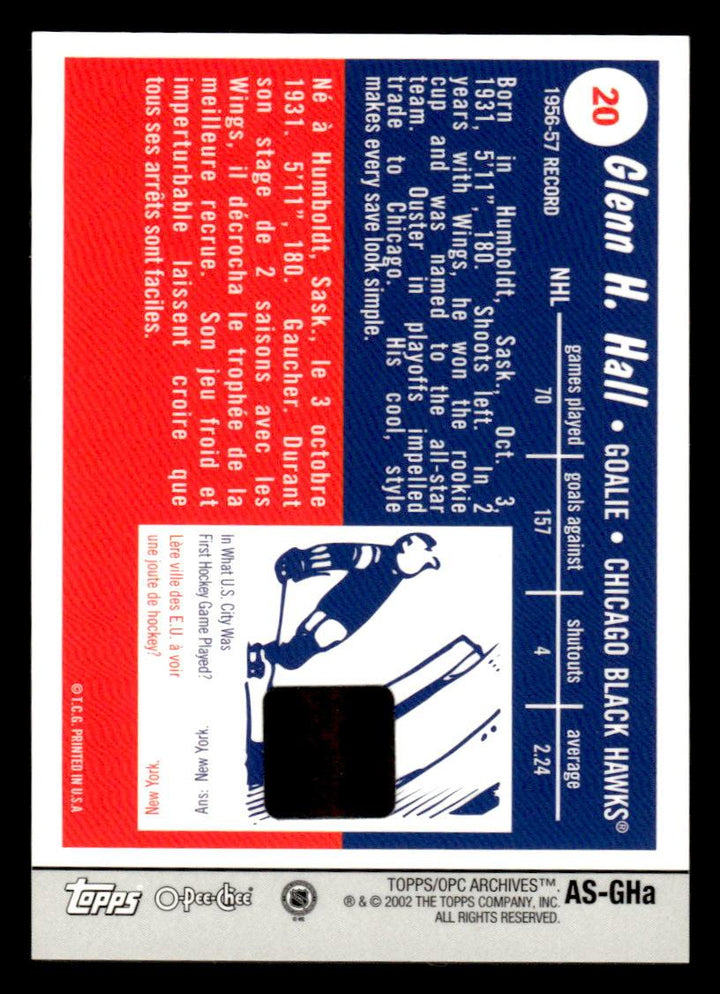 2001 TOPPS / O-PEE-CHEE ARCHIVES GLENN HALL AS-GHA ARENA SEATS BLACKHAWKS