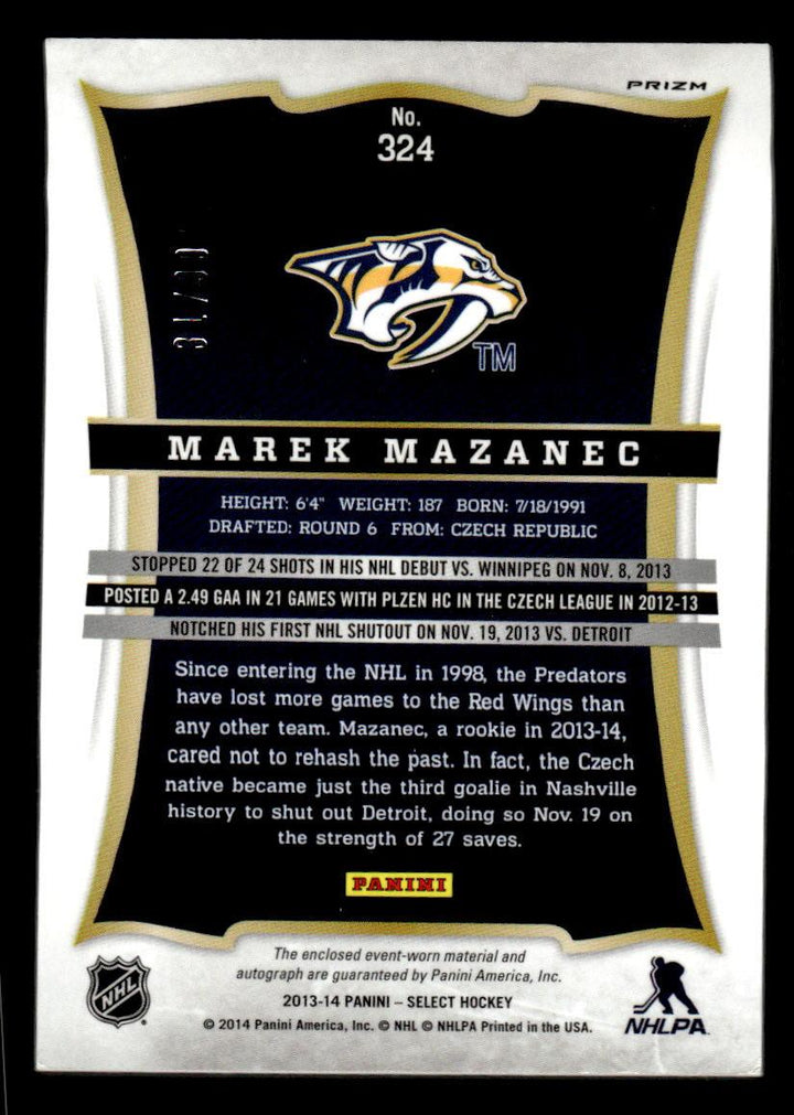 2013 ROOKIE ANTHOLOGY MAREK MAZANEC 324 SELECT JERSEY PRIZM AUTOGRAPH 31/99