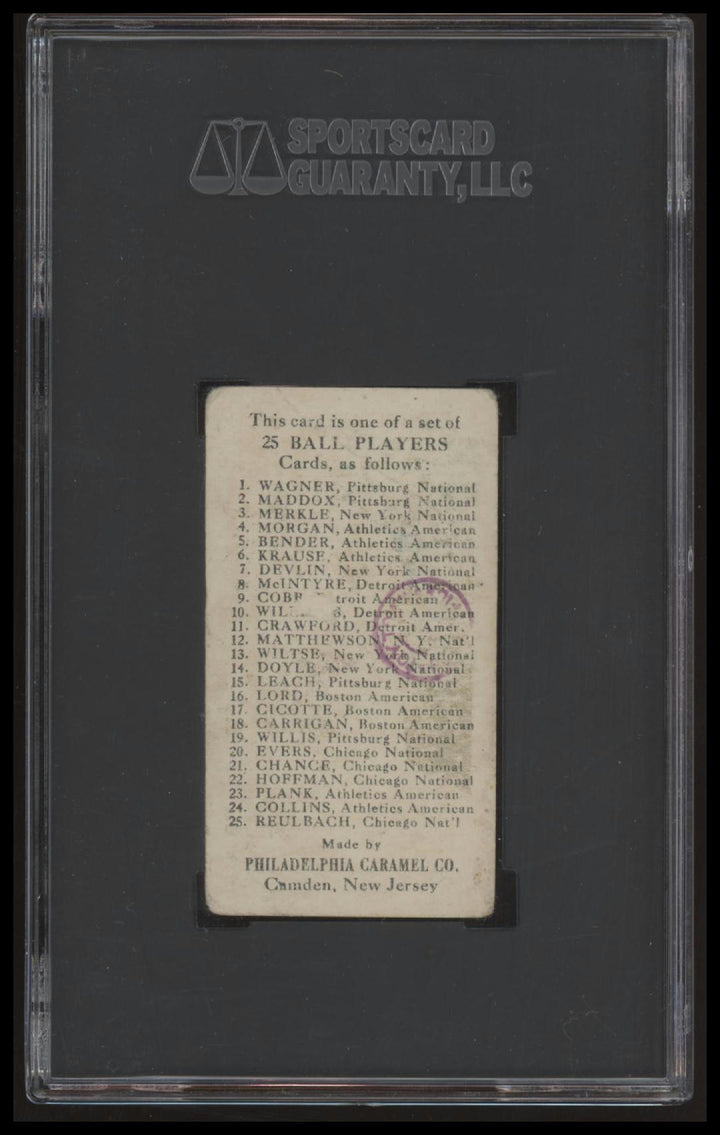 1909 E95 VIC WILLIS FAIR CARAMEL BACK STAMP SGC 1.5 PIRATES