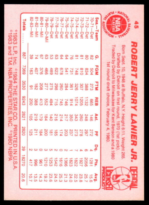 1983 STAR BOB LANIER 45 MINT SP BASKETBALL MILWAUKEE BUCKS