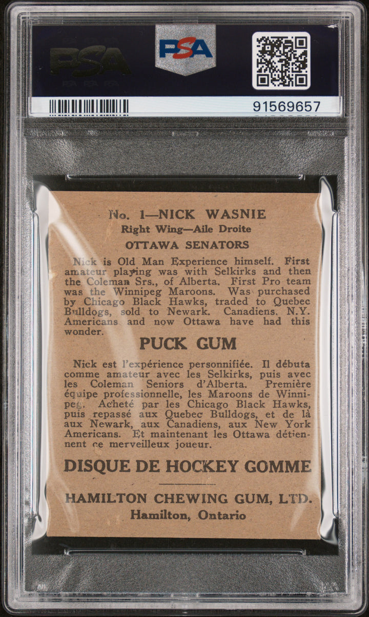 1933 HAMILTON GUM NICK WASNIE 1a GOOD RC V288 PSA 2 HOCKEY OTTAWA SENATORS