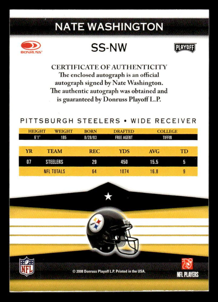 2008 PLAYOFF NATE WASHINGTON SS-NW SILVER SIGNATURES AUTOGRAPH 5/58 STEELERS