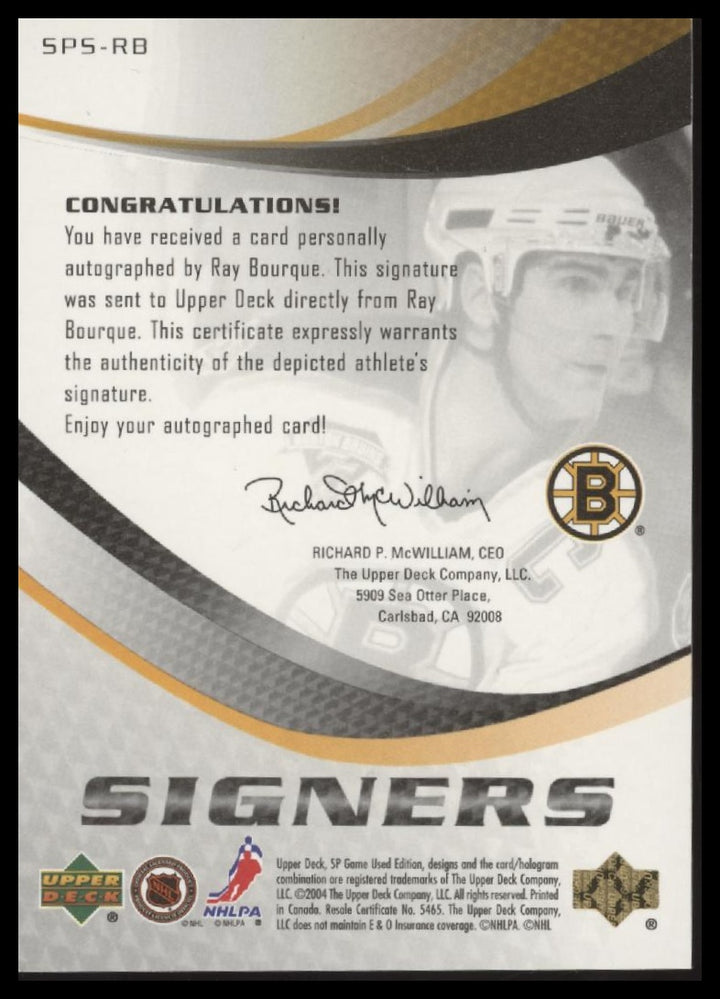 2003 SP GAME USED RAY BOURQUE SPS-RB MINT SIGNERS AUTOGRAPH HOCKEY BOSTON BRUINS
