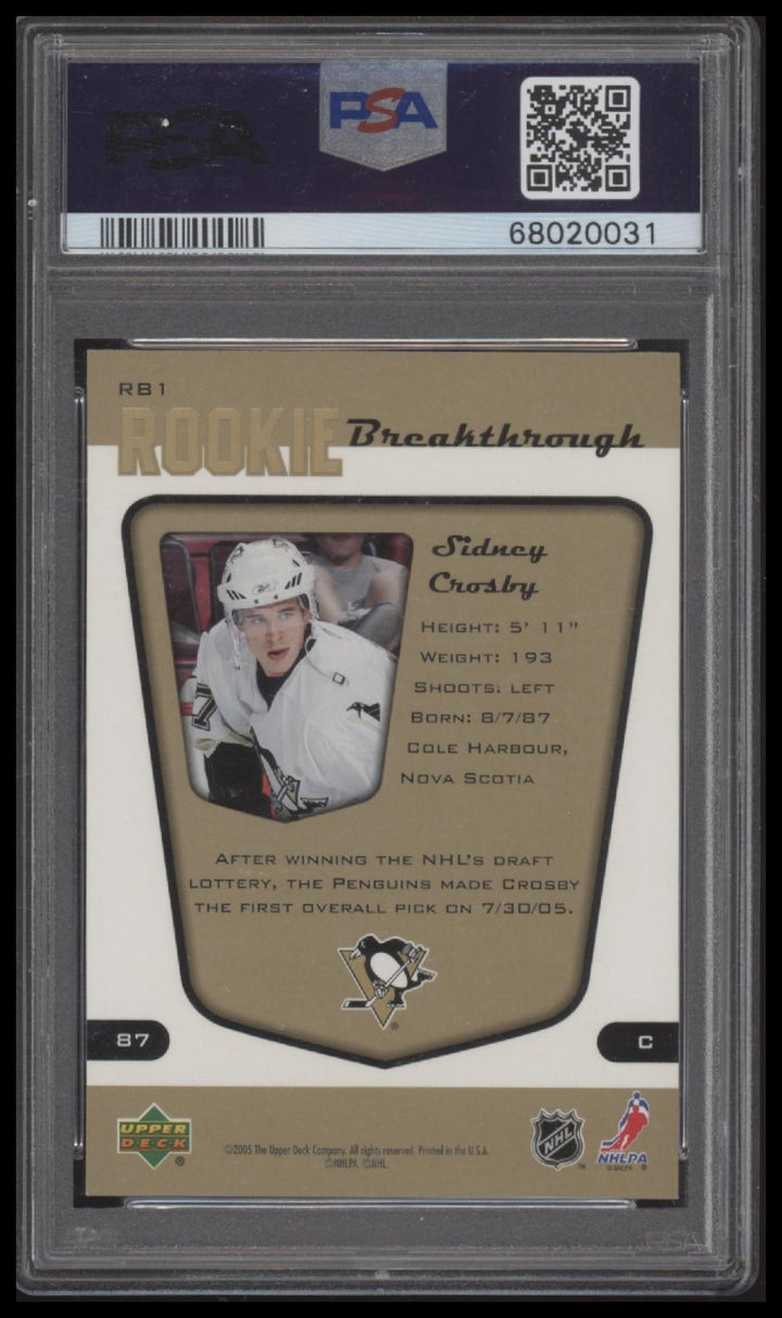 2005 UPPER DECK MVP SIDNEY CROSBY RB1 NRMT-MT ROOKIE BREAKTHROUGH PSA 8 PENGUINS
