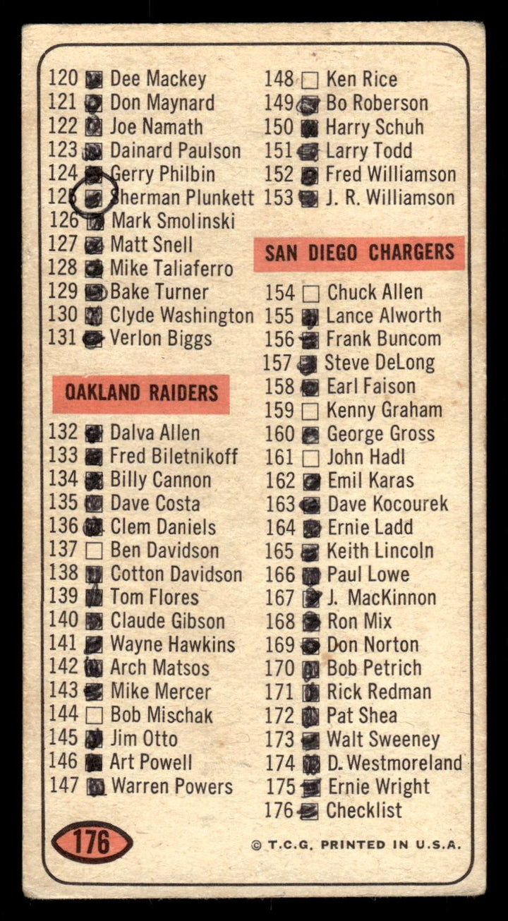 1965 TOPPS SERIES TWO 176 VG SP SET BREAK FOOTBALL CHECKLIST