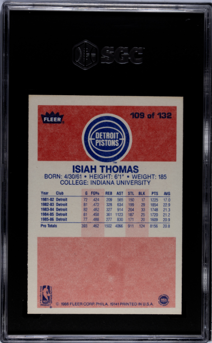 1986 FLEER ISIAH THOMAS 109 NRMT-MT+ SET BREAK SGC 8.5 DETROIT PISTONS