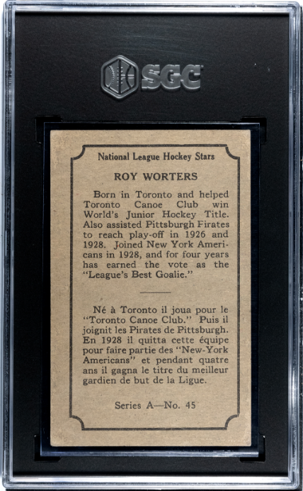 1933 O-PEE-CHEE ROY WORTERS 45 RC GREEN NONE HIGHER SGC 3 NEW YORK AMERICANS