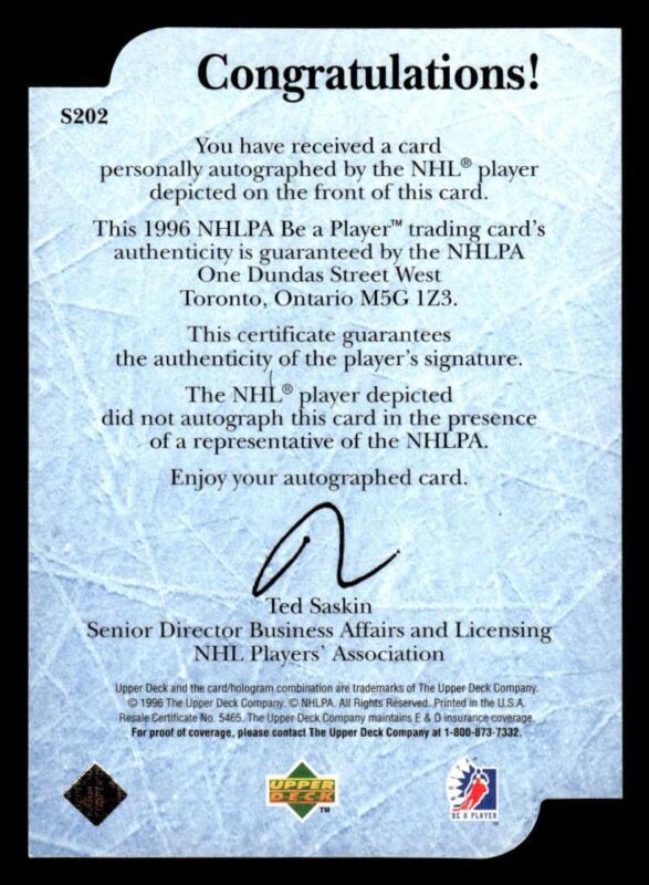 1995 UPPER DECK BE A PLAYER BOBBY HOLIK S202 AUTOGRAPHS DIE CUT DEVILS