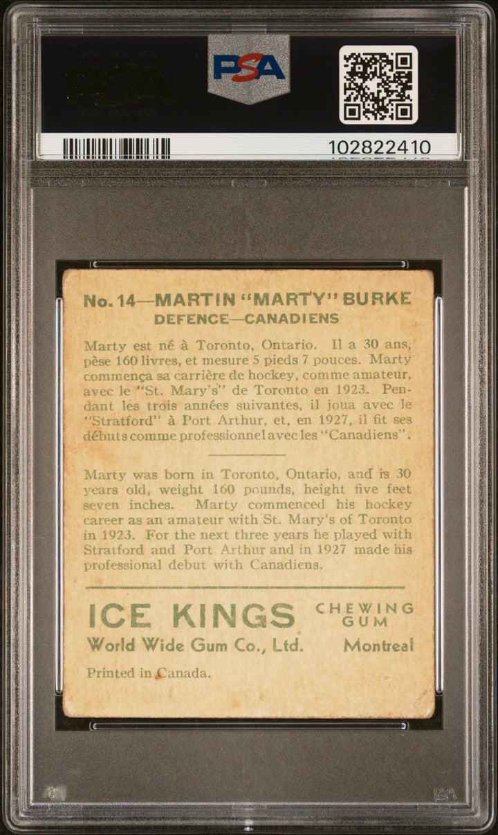 1933 WORLD WIDE GUM ICE KINGS MARTY BURKE 14 RC V357 PSA 3 VG HOCKEY BLUE JAYS