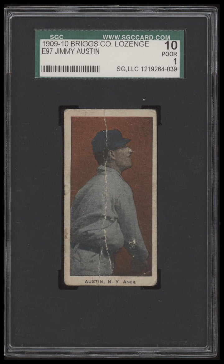 1909 E97 JIMMY AUSTIN C.A. BRIGGS COLOR SGC 1 POOR BASEBALL NEW YORK HIGHLANDERS