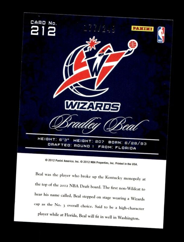 2012 PANINI PRESTIGE BRADLEY BEAL 212 MT RC BONUS SHOTS 177/249 WIZARDS