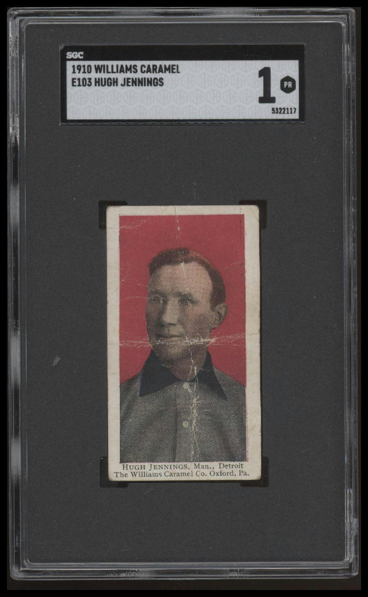 1910 E103 HUGHIE JENNINGS NNO POOR WILLIAMS CARAMEL SGC 1 DETROIT TIGERS