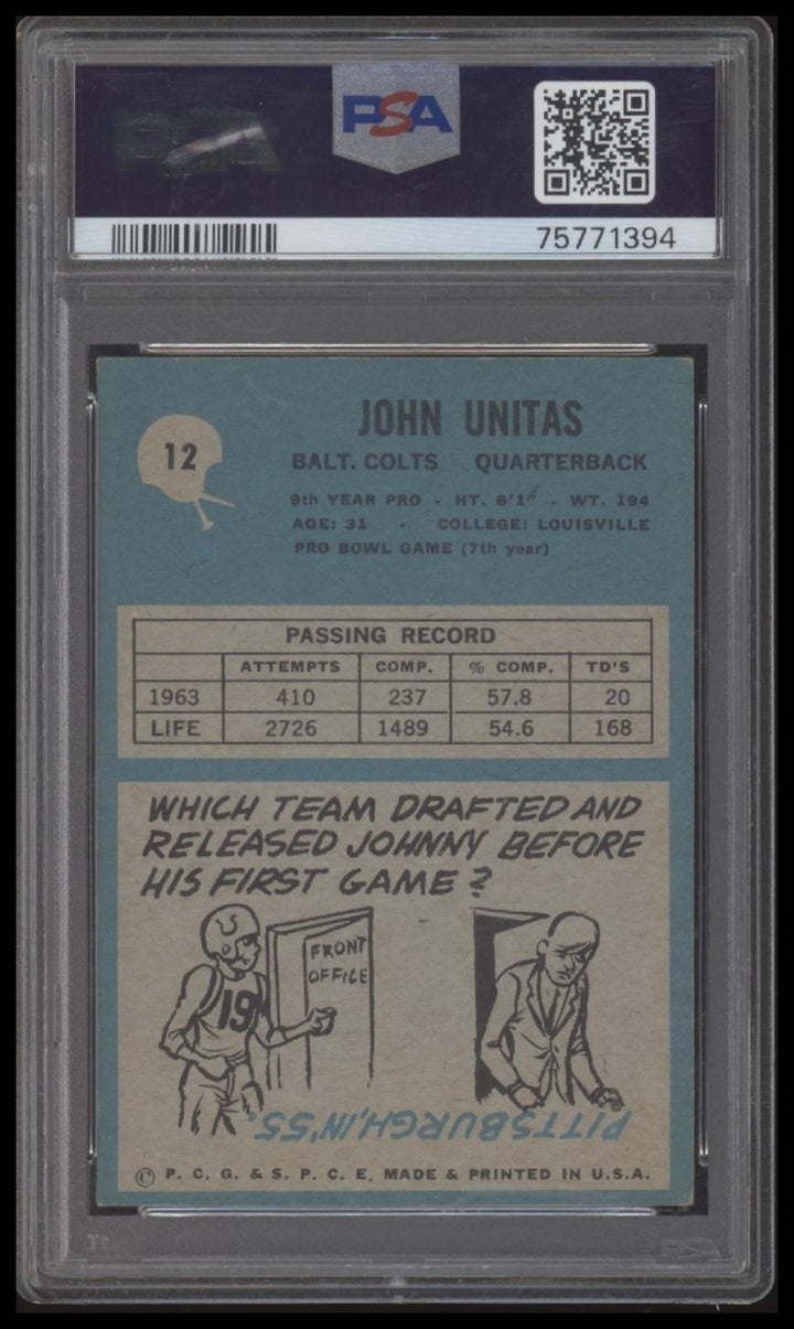 This JOHN UNITAS, from the 1964 PHILADELPHIA set, is in VG-EX condition.