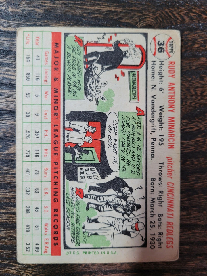 1956 TOPPS RUDY MINARCIN 36 BASEBALL CINCINNATI REDS