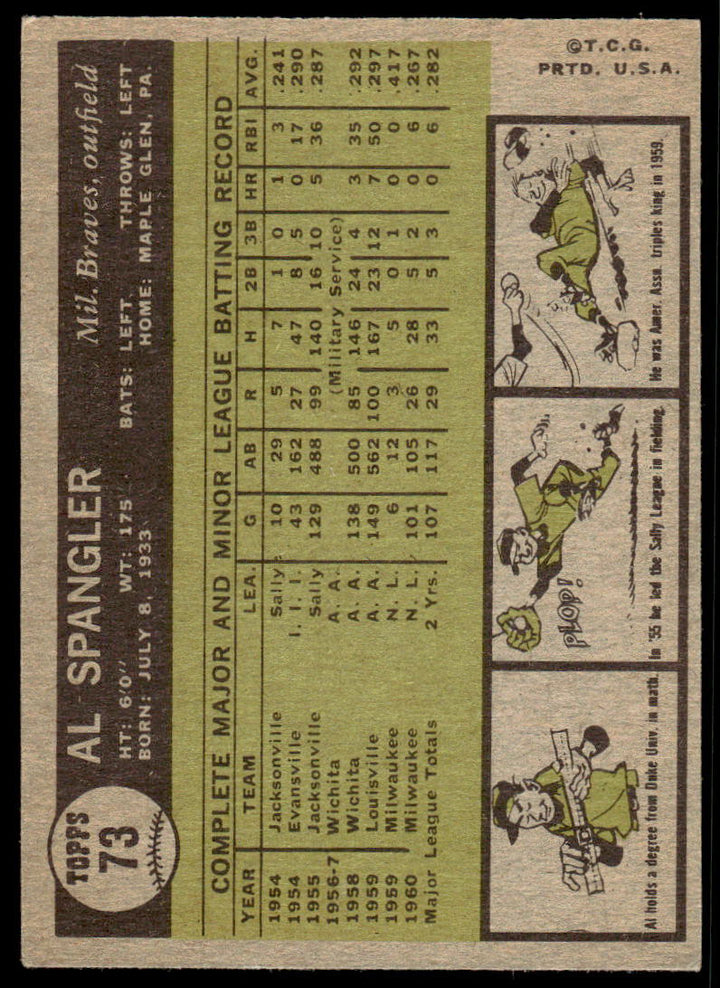 1961 TOPPS AL SPANGLER 73 VG BASEBALL MILWAUKEE BRAVES