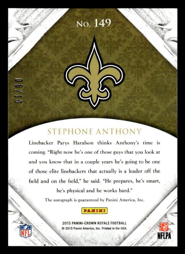 2015 PANINI CROWN ROYALE STEPHONE ANTHONY 149 RC TEAM NAME AUTOGRAPH 6/10 SAINTS