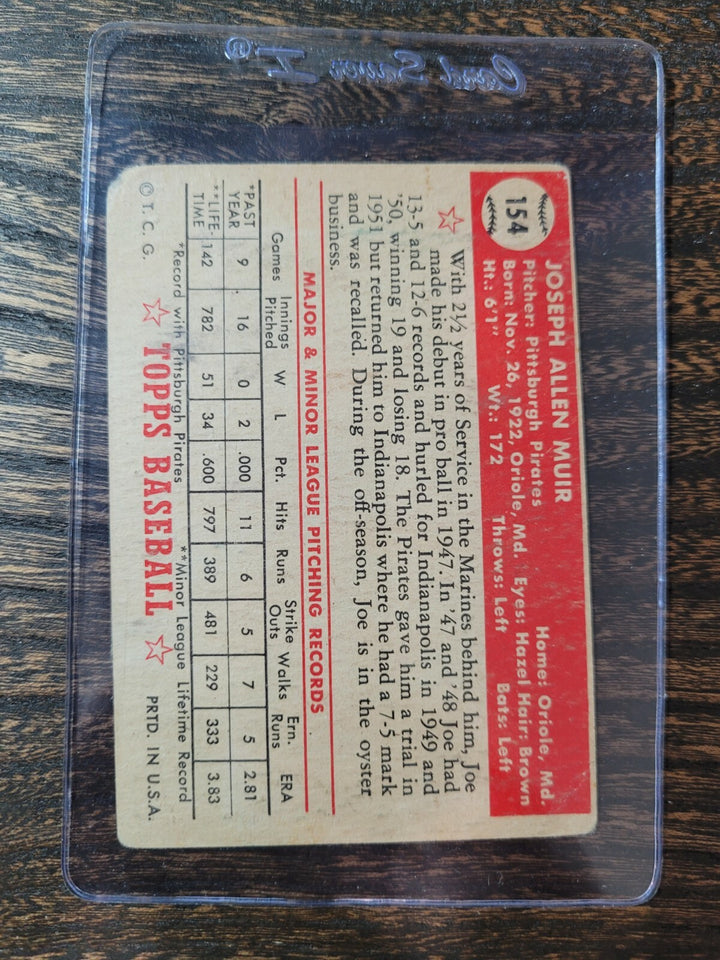 1952 TOPPS JOE MUIR 154 RED BACK BASEBALL PITTSBURGH PIRATES