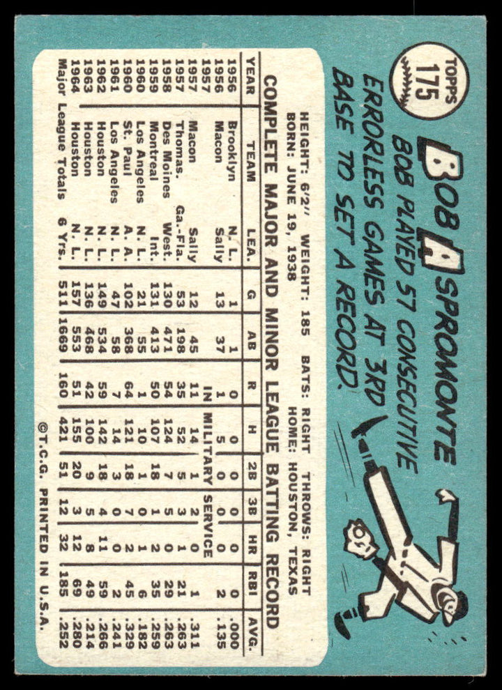 1965 TOPPS BOB ASPROMONTE 175 VG BASEBALL HOUSTON ASTROS