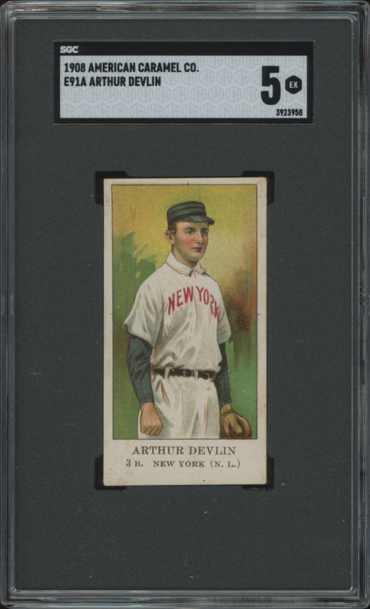 1908 E91-A ART DEVLIN EX AMERICAN CARAMEL HIGHEST GRADED SGC 5 NEW YORK GIANTS