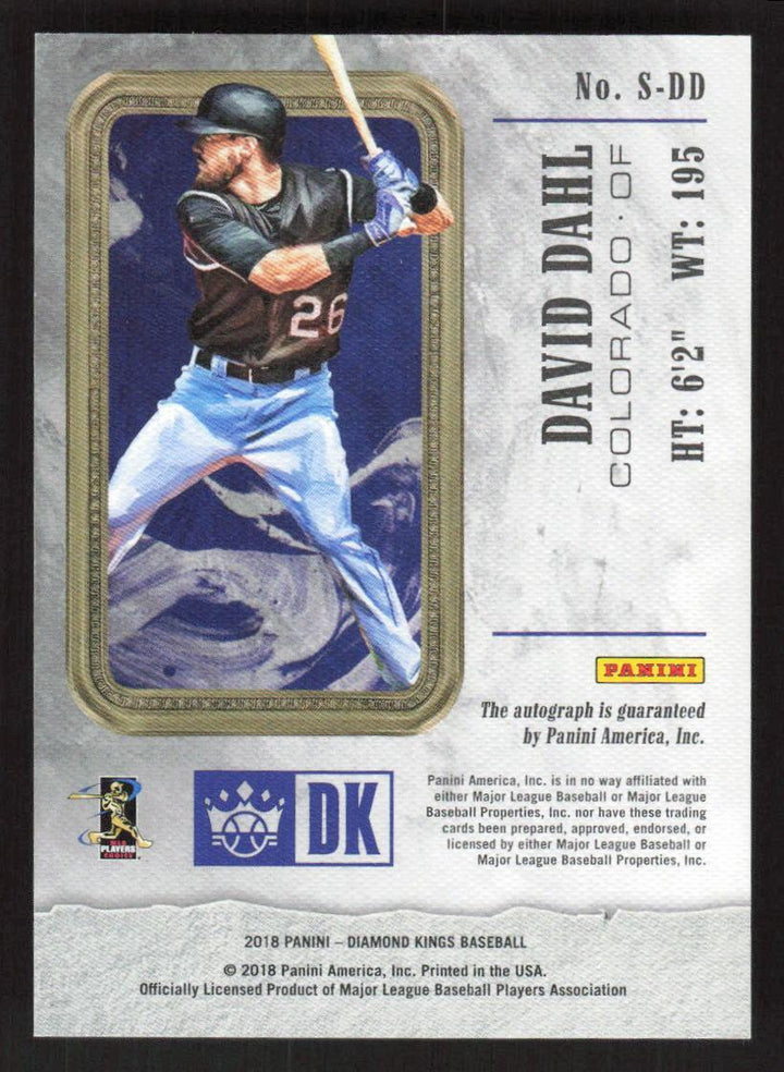 2018 PANINI DIAMOND KINGS DAVID DAHL S-DD DK SIGNATURES DUAL RELIC 39/49 ROCKIES