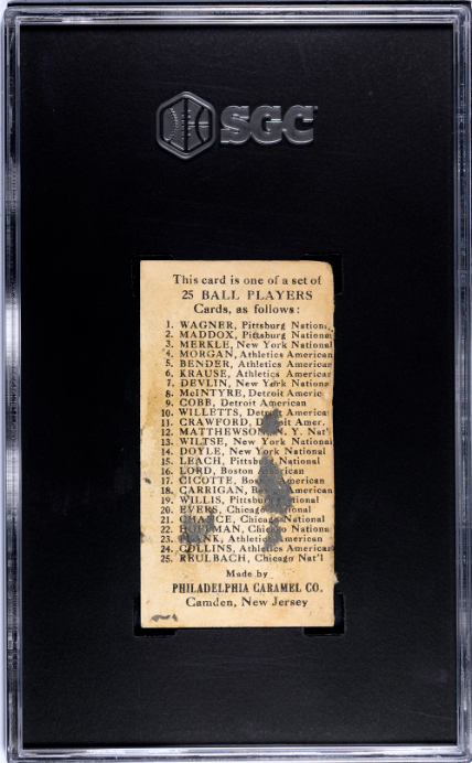 1909 E95 ED WILLETT NNO POOR PHILADELPHIA CARAMEL SGC A BASEBALL DETROIT TIGERS