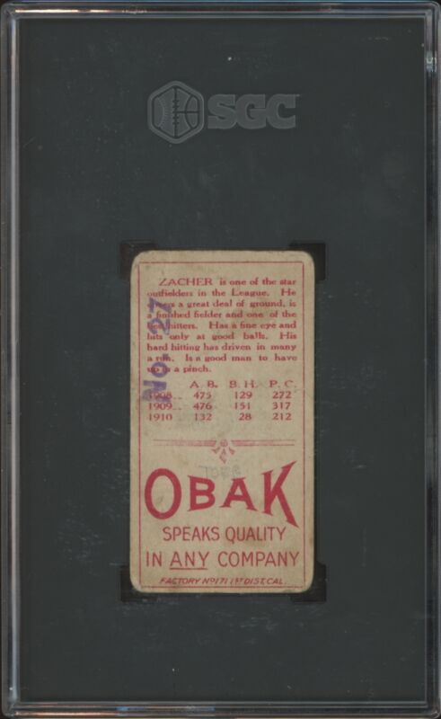 1909 T212 ELMER ZACHER NNO POOR OBAK BACK STAMP SGC 1 BASEBALL OAKLAND OAKS