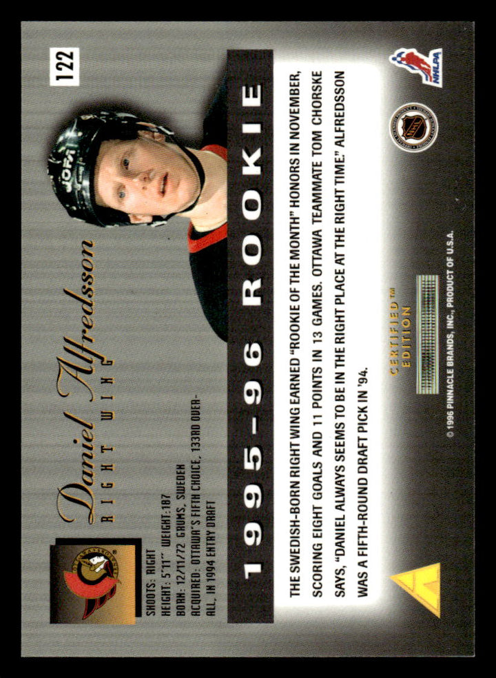 1995 SELECT CERTIFIED DANIEL ALFREDSSON 122 MINT RC HOCKEY OTTAWA SENATORS