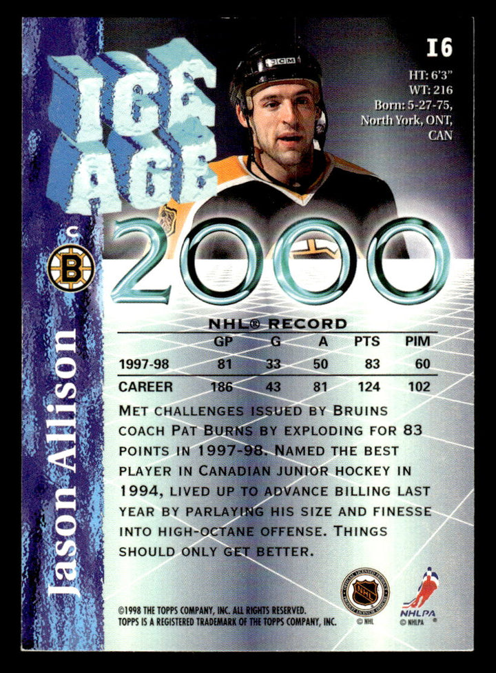 1998 TOPPS JASON ALLISON I6 MINT ICE AGE 2000 HOCKEY BOSTON BRUINS