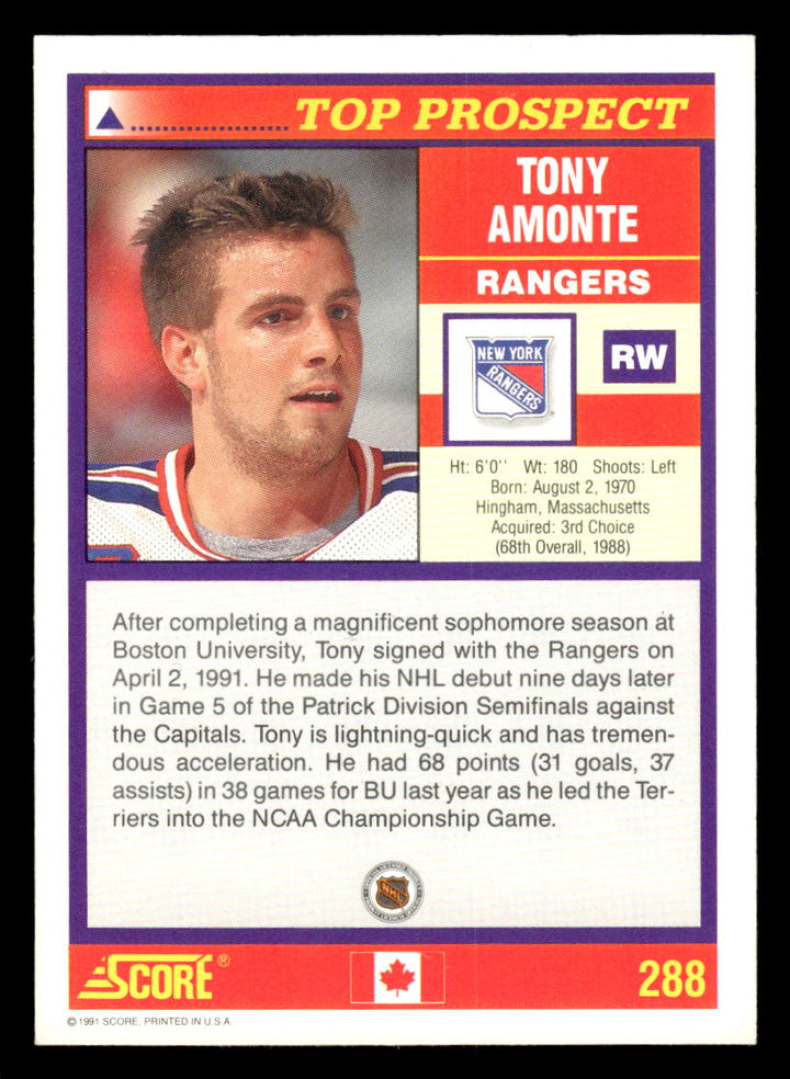1991 SCORE AMERICAN TONY AMONTE 398 MINT RC HOCKEY NEW YORK RANGERS