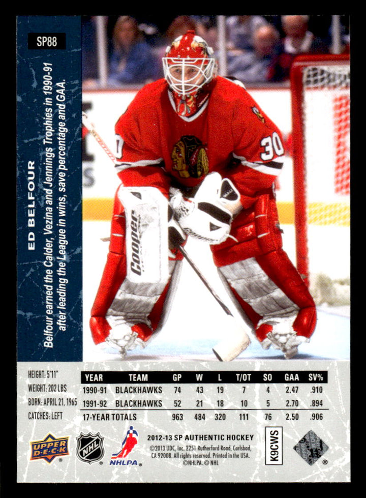 2012 SP AUTHENTIC ED BELFOUR SP88 MINT 1994-95 SP RETRO HOCKEY CHICAGO BLACKHAWK