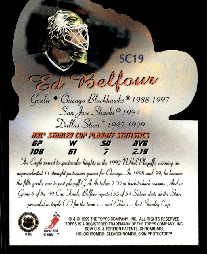 1999 TOPPS ED BELFOUR SC19 MINT STANLEY CUP HEROES HOCKEY DALLAS STARS
