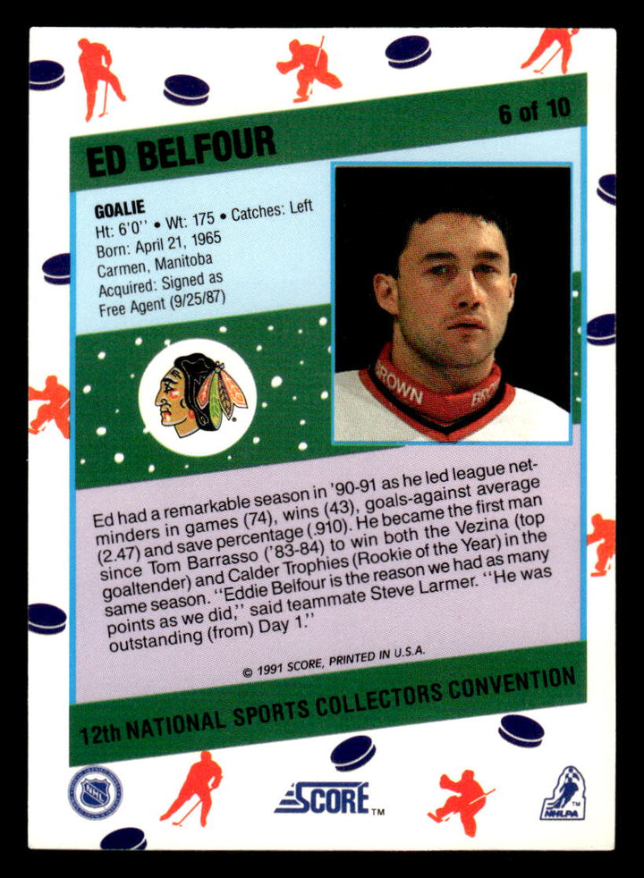 1991 SCORE 12TH NATIONAL SPORTS ED BELFOUR 6 MINT HOCKEY CHICAGO BLACKHAWKS