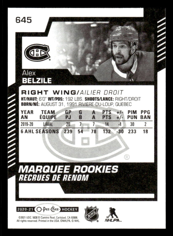 2020 UPPER DECK ALEX BELZILE 645 MINT O-PEE-CHEE RC HOCKEY MONTREAL CANADIENS