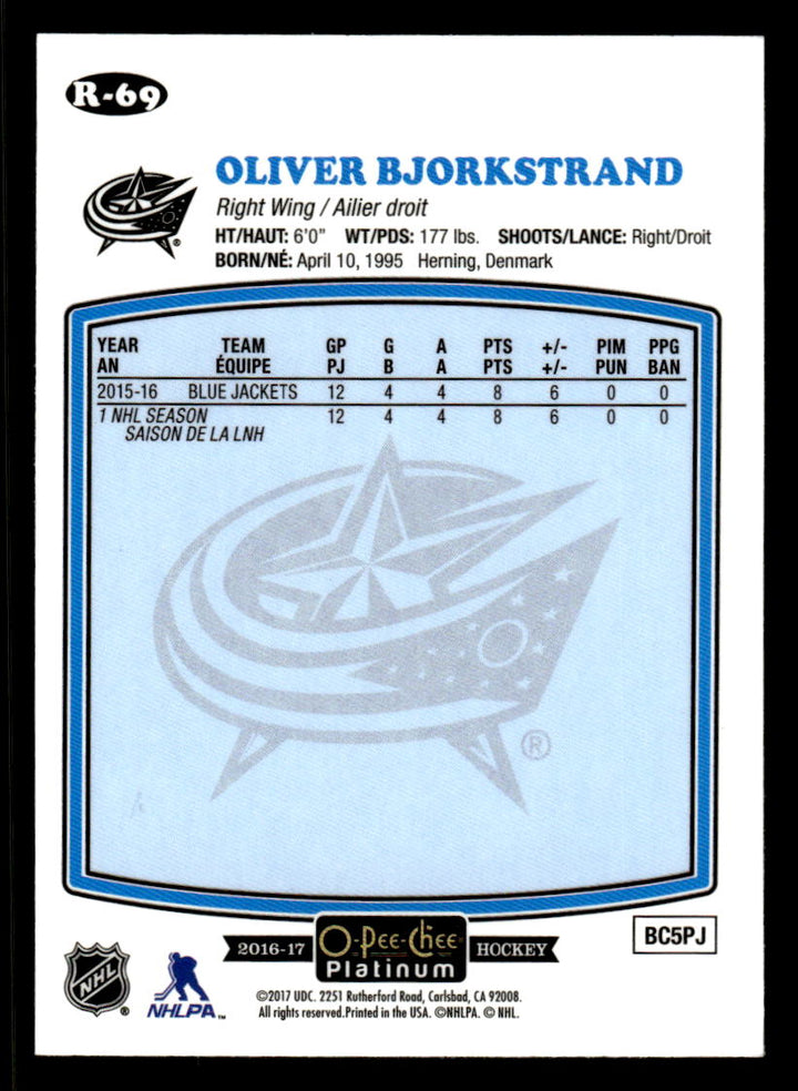 2016 PLATINUM OLIVER BJORKSTRAND R-69 MINT RETRO HOCKEY COLUMBUS BLUE JACKETS