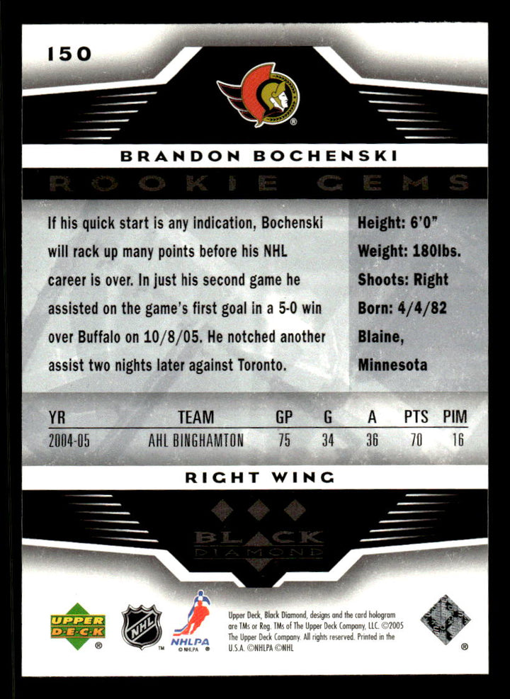 2005 UPPER DECK BLACK DIAMOND BRANDON BOCHENSKI 150MINT RC HOCKEY OTTAWA SENATOR