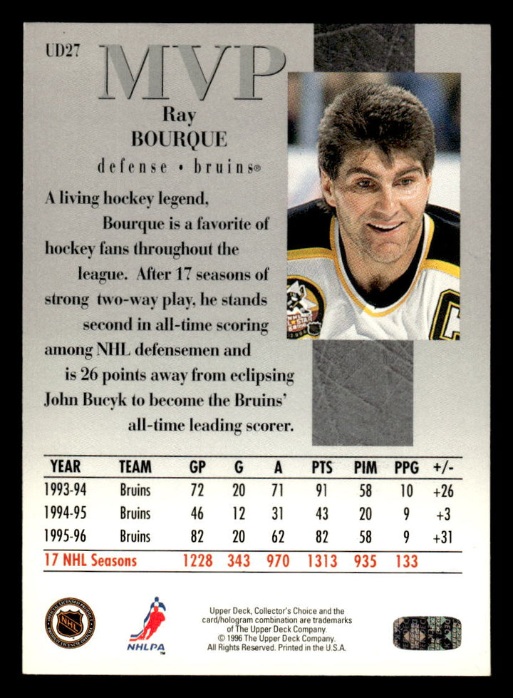 1996 COLLECTOR'S CHOICE RAY BOURQUE UD27 MINT UPPER DECK MVP HOCKEY BOSTON BRUIN